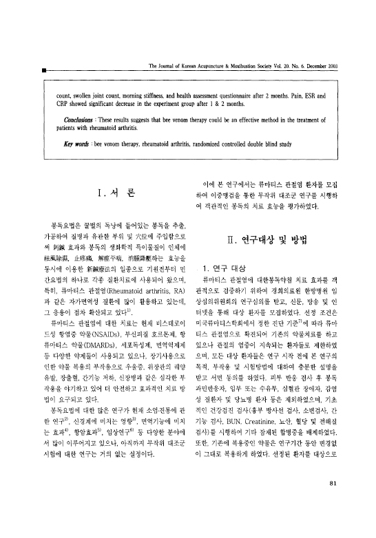 봉독약침은 강력한 소염작용과 진통작용, 혈액순환촉진, 면역기능향상 등의 효과가 있습니다.
