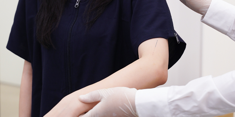 시술시 문진표를 작성하며 개인별 알러지반응을 체크하기 위하여 내원시마다 매번 스킨테스트 후 안전하게 시술합니다.