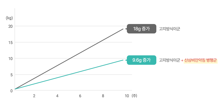 동물실험 : 실험쥐를 대상으로 고지방이식률 10주간 투여하여 비만을 유발시킴.