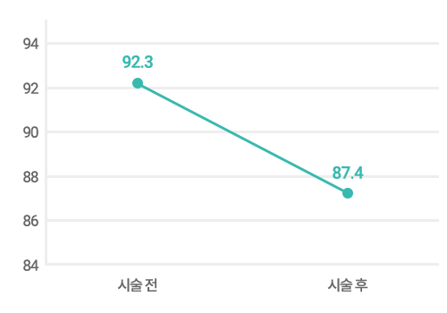 | 시술 전 92.3cm에서 시술 후 87.4cm로 감소 | 시술 전 1,270Kcal에서 시술 후 1,285Kcal로 증가 | 총 콜레스테롤/LDL 감소, 간/신장기능에 무영향 |
