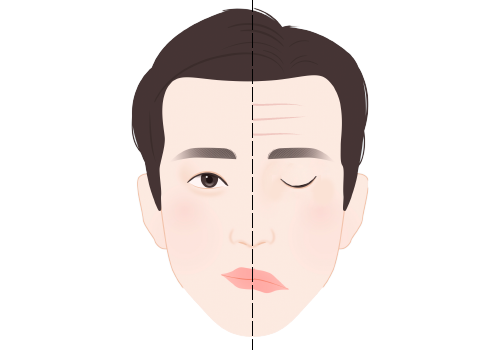 | 마비된 안면근육이 풀리지 않아 좌우 비대칭 발생, 입꼬리가 올라가 있거나 눈꺼풀이 처질 수 있음 | 자신의 의지와 상관없이 안면부에 경련이 생기거나 안면 근육이 경직 | 뇌 신호와 다르게 안면근이 움직일 수 있음 | 마비 이후 침샘과 눈물샘 신경이 얽히면서 음식을 먹거나 음식 생각만 해도 눈물이 흐르는 증상 |