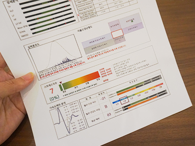 체성분검사를 통해 체중과 수분, 단백질, 지방, 근육량 등을 분석합니다.