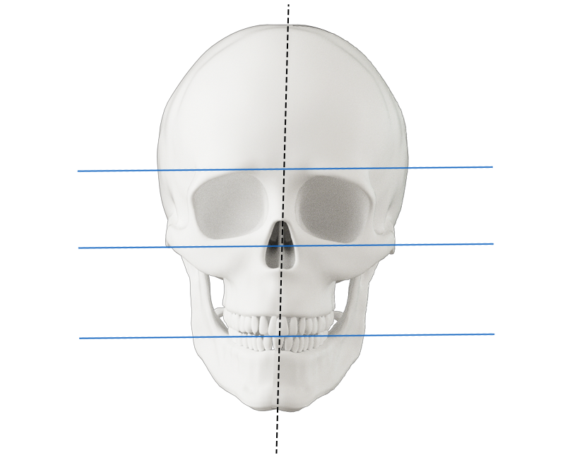 턱관절에 이상이 생기면 얼굴의 좌우를 비교하였을 때 좌우 얼굴 길이나 면적에 차이를 보이며 입술 기울기가 평행을 이루지 못하게 되고 이런 경우 안면비대칭이라고 말합니다. 안면비대칭은, 아래턱인 하악만 회전된 경우, 위턱인 상악과 아래턱인 하악이 같은 방향으로 회전된 경우, 상악과 하악이 서로 반대방향으로 회전된 경우로 나뉘는데, 턱관절의 방향은 턱과 경추의 복합적인 운동으로 정해지므로 상악과 하악만 보는 치료로는 안면비대칭을 근본적으로개선할 수가 없습니다.